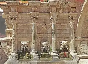 Babylone, est une ville antique de la Mésopotamie située dans l'Irak actuel. On situe le début de sa construction au IIIe millénaire, mais sa profonde transformation et son apogée datent du Ve siècle av. J.-C., avec le roi conquérant Nabuchodonosor II et la construction de palais, temples, ziggourats et des grandes voies de circulation. Babylone, ville plusieurs fois détruite et reconstruite au cours des âges, est l'objet de fouilles depuis une centaine d'années par plusieurs équipes internationales dont des allemandes[48]. La ville était construite sur la partie gauche de l'ancien lit de l'Euphrate, des fossés et canaux remplis par l'eau du fleuve constituaient à la fois un rideau défensif, mais également permettaient le drainage des eaux de pluie et l'évacuation des eaux usées vers le fleuve[49]. Des réseaux d'adduction d'eau de la ville il subsiste peu d'informations, soit par la destruction du site au cours des différentes invasions, anciennes ou plus récentes, soit également par les recherches archéologiques non terminées ou pas encore entreprises.