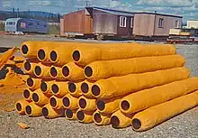 « Il est clair que c'est là l'empreinte de tube de cuivre ronds, d'environ 0,047 m (47 mm) de diamètre extérieur [...] et d'une épaisseur de 0,001 4 m (1,4 mm). Un examen plus précis a permis à certains endroits, (d, 6 et e, 5-6) de déterminer la longueur des éléments de tube à 1,02 m. Les tubes étaient emboîtés les uns dans les autres, la longueur de l'emboîture n'était pas reconnaissable. La jonction latérale (servant à l'étanchéité du tube) se faisait par un simple recouvrement de 0,026 m (26 mm) de large »