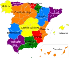 La nouvelle division provinciale élaborée par Javier de Burgos en 1833 tarda à manifester son influence par rapport aux anciens cadres territoriaux médiévaux[50]. À la différence des départements français qui démantelèrent en grande partie les unités territoriales préexistantes, la division provinciale espagnole se basa essentiellement sur les anciens royaumes et provinces de l’Ancien Régime, et ne fit que s’y superposer. De plus, les droits foraux furent maintenus dans certains territoires — Navarre et provinces basques —[66].