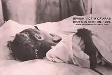De 1926 à 1929, l'émigration juive excède l'immigration, et la communauté juive stagne[55]. Lors des émeutes arabes d', une campagne de « terreur arabe » est menée contre les Juifs, faisant plusieurs centaines de victimes juives[56],[57] (Les 40 victimes juives par journée de , passent à 80 par journée en [1]). Les violences sont encouragées par des dirigeants arabes qui affirment que les Juifs auraient de mauvaises intentions concernant les lieux saints islamiques. Le 15, le Haut Conseil islamique organise une manifestation contre les prières juives du mur des Lamentations qu'il considère comme une menace. Les 2 000 manifestants chantent des slogans comme : « Il n'y a pas d'autre Dieu qu'Allah » et « la religion de Mahomet est venue avec l'épée » et détruisent les livres de prières juifs et autres objets sacrés. Le lendemain, un enfant juif jouant à la balle, l'envoie dans une échoppe de tomates et est poignardé à mort[58].