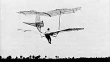 Lilienthal cependant insiste sur le fait que la pratique doit aller de pair avec l'étude théorique[5]; il doit donc apprendre à voler[1].En 1891, il fabrique son premier planeur en tiges de saule pelée recouvertes de tissu ciré; il a la forme d'une paire de larges ailes d'oiseau avec des surfaces de queue horizontales et verticales fixes. Au cours des cinq années suivantes, il construit plusieurs hängegleiters, monoplans et biplans. Il navigue dans les airs avec son corps et ses jambes pendant sous la machine, il est convaincu que la stabilité et le contrôle peuvent être mieux obtenus par les mouvements du corps du pilote (hängegleiter)[5]: le pilote se tient au milieu de l'appareil, enfonçant ses bras à travers des ouvertures rembourrées dans le châssis, de sorte que le poids en vol repose sur les coudes. Il maintient son équilibre dans les airs en déplaçant son corps ou en balançant ses jambes pour déplacer le centre de gravité et le maintenir directement sous le centre de portance. Cela nécessitait une grande capacité acrobatique, mais par une pratique persistante, Lilienthal finit par maîtriser cet art au point de pouvoir voler même par vent fort[1].