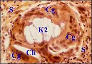 Désignée tout entière sous le nom de « matrice » par certains auteurs[1], elle présente un aspect histologique rappelant beaucoup celui décrit pour la poche de rétraction. Les deux lésions ne se distinguent classiquement que par des particularités évolutives et structurales mineures qui leur sont propres[4].