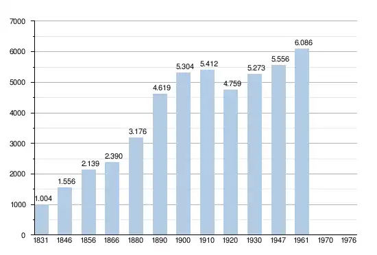- Sources : INS, Rem. : 1831 jusqu'en 1970 = recensements, 1976 = nombre d'habitants au 31 décembre.