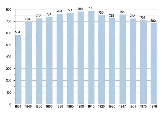 - Sources:INS, Rem:1831 jusqu'en 1970=recensements, 1976= nombre d'habitants au 31 décembre
