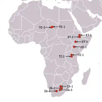 À ce jour, les paléoanthropologues n'ont trouvé de représentants de la sous-tribu des hominines antérieurs au genre Homo qu'en Afrique, principalement dans trois grandes régions : la grande Faille est-africaine, qui court de l'Éthiopie jusqu'au Malawi, l'Afrique du Sud, et le Tchad. Les principaux sites de découverte sont les suivants :