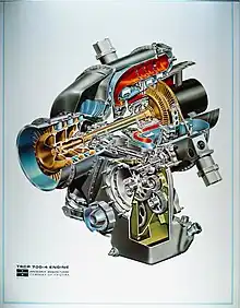 Le petit réacteur Garrett TFE731 a été construit sur la base de la TSCP 700, dont il reprend les parties « chaudes ». Il est utilisé sur des avions d'affaires et d'entrainement.