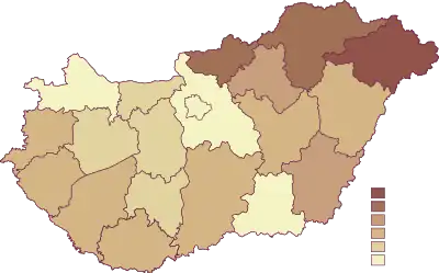La superficie totale est de 19 949 km2, ce qui représente 21,4 % de la surface terrestre du territoire de la Hongrie[15].