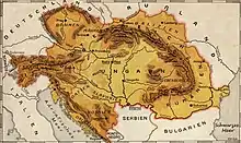 La Hongrie partage des frontières avec sept pays (dont cinq sont, comme elle, membres de l'Union européenne), 2 189 km au total[2]. Elles sont toutes tracées pour délimiter la deuxième république de Hongrie, fin 1918 et début 1919, à la suite de la dislocation de l'Autriche-Hongrie et de la première république hongroise. À deux exceptions près (environs de Sopron en 1922, et de Bratislava en 1946), la délimitation est effectuée par la commission internationale Lord où des géographes comme Robert Seton-Watson (en), Emmanuel de Martonne ou encore l'historien Ernest Denis jouent un rôle important. Ces frontières sont officialisées par les traités de Trianon (1920) et de Paris (1947)[11]. Pour l'opinion hongroise, le traité de Trianon est une tragédie nationale (que le gouvernement envisage de commémorer solennellement en 2020[12]), car, par rapport à son territoire antérieur, le pays a perdu 71 % de sa superficie et 32 % des magyarophones, devenus citoyens autrichiens (dans le Burgenland), tchécoslovaques (aujourd'hui slovaques ou ukrainiens), roumains ou yougoslaves (aujourd'hui slovènes, croates ou serbes).