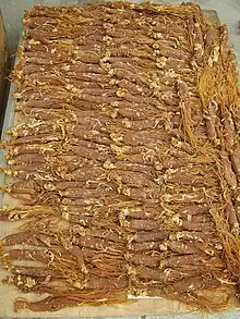 Le Hongsam (autrement, du ginseng rouge) (홍삼) est le ginseng (une plante originaire d'Asie du Nord-Est, dont la racine est réputée pour ses propriétés pharmaceutiques) fait cuit à la vapeur ou bien séché au soleil. Le Hongsam est souvent mariné en une décoction aux herbes qui fait que les racines deviennent très fragiles. Cette version de ginseng est censée augmenter les fonctions sexuelles et l'énergie de l'homme. Le Hongsam est toujours produit avec des racines de ginseng cultivé, qu'il soit d'origine sud-coréenne ou chinoise.