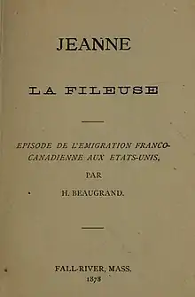 - Jeanne la fileuse : épisode de l'émigration franco-canadienne aux États-Unis, roman, 1878.