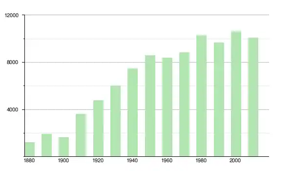 | 1950 | 8 605 | ▲ +15,12 % | |