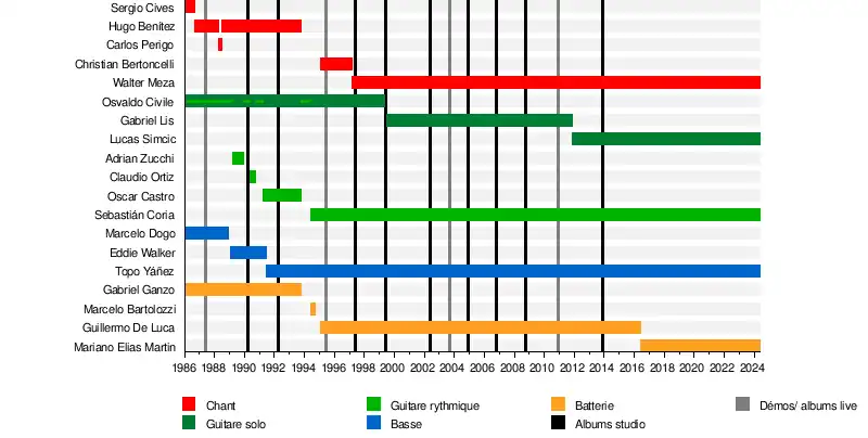 - Osvaldo Civile (†) - guitare (1986–1999) (V8, Té de Brujas)