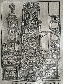 Une première horloge, dite des Trois Rois (car elle faisait défiler à chaque heure les trois rois mages devant la Sainte Famille), avait été construite entre 1352 et 1354 par un maître inconnu, mais elle a dû cesser de fonctionner au début du XVIe siècle en raison de son usure et de la rouille[3].
