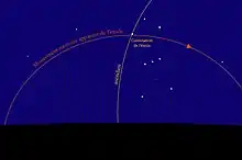Fonctionnement d'une table tirée de l'horloge stellaire de Ramsès VI (le méridien est en orange)