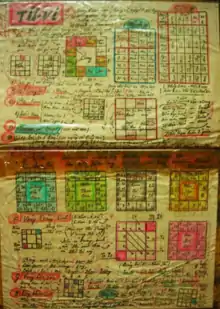 Un niveau plus élevé du Tử Vi est le Hà Lạc ou le Hà Lạc Bát Tự qui est une méthode de divination basée sur les mouvements des 64 Koua du Bagua, l'influence du yin - yang, le changement des cinq éléments, combinés avec les données principales du Tử Vi (l'heure, date du calendrier lunaire...). Ci-dessous, ce sont les deux plans chiffrés et colorés pour les études de Hà Lạc[19]: