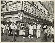 L'origine la plus probable est Charles L. Feltman (en), un immigrant allemand, boulanger à Brooklyn (New York), qui a eu en 1867 l'idée de faire fabriquer un chariot mobile lui permettant de griller des saucisses qu'il servait dans un pain (également réchauffé) à Coney Island[7]. En 1871, il y loue une parcelle de terrain pour ouvrir son premier restaurant, le Feltman's Ocean Pavilion. À sa mort, en 1910, Feltman servait jusqu'à 40 000 hot-dogs par jour (appelés « red hots »), dans ses neuf restaurants, et possédait un cinéma en plein air, un hôtel et divers pavillons, des manèges et un roller coaster[7]. Ses deux fils prendront sa succession, et en 1920, alors que l'entreprise emploie plus de 1 000 personnes, le Feltman's est considéré comme le plus grand restaurant du monde[7].