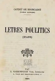 Sarpoulet précise que "En Béarn ce furent des luttes qui se déroulèrent entre 1870 et 1881 qui firent 'objet d'une polémique humoristique. [...] Dans le canton d'Orthez deux partis s'opposaient alors : les Royalistes avec Chesnelong et Planté, les républicains avec Vignancour. Le comité Vignancour éditait le journal le Conservateur [...] le chroniqueur gascon attitré était Eugène Larroque (1832 - 1899) qui signait Lou Catdèt de Hourcadut." [39].