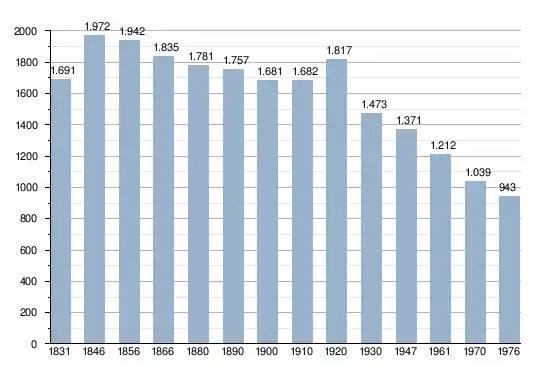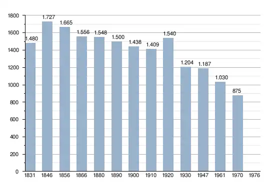 - Sources : INS, Rem. : 1831 jusqu'en 1970 = recensements, 1976= population au 31 décembre[3].