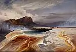 1837 | 1926 | Les tableaux représentant les paysages de l'Ouest américain furent déterminants pour la création du parc national de Yellowstone. Ses peintures qui avaient saisi la grandeur et la diversité des paysages de Yellowstone furent présentées au Congrès américain par les initiateurs du projet du parc. On fait quelquefois référence à Thomas Moran avec Albert Bierstadt, Thomas Hill et William Keith comme l'école des Montagnes rocheuses. |