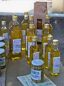 - les huiles alimentaires, d'origine animale ou végétale. Elles sont fabriquées dans les huileries par des huiliers, le plus souvent par pressage des graines d'oléagineux. Il est dit à froid, s'il se fait à une température inférieure à 50 °C ;