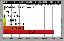 Les États-Unis et le Brésil possèdent les plus grandes réserves mondiales de schiste riches en carbone et donc de ce carburant potentiel. La méthode a été expérimentée dès les années 1970 aux États-Unis dans le Colorado (sur les Green River shales, dans la vaste formation de la Green River apparue par dépôt annuel ininterrompu durant environ 6 millions d'années de sédiments riches en matière organique (à l'Éocène). Elle a aussi été testée au Brésil, dans une formation ancienne (datée du Permien) à Irati et à S. Mateus do Sul dans l'État du Parana)[3]. Dans les deux cas, on a réussi à synthétiser une « huile de schiste » contenant des oléfines (absentes de presque tous les pétroles naturels) mais riche en composés azotés (plus que le pétrole brut)[3]. Malgré des procédés innovants (récupération utilisant la combustion du carbone résiduel issu de la pyrolyse), le bilan énergétique était médiocre. De plus chaque augmentation du prix de l'énergie augmente le coût technique de production de l’huile de schiste et un grand volume de cendres résulte de pyrolyse, qu'il faut encore coûteusement gérer (sauf à la stocker en de mauvaises conditions environnementales)[3] ;