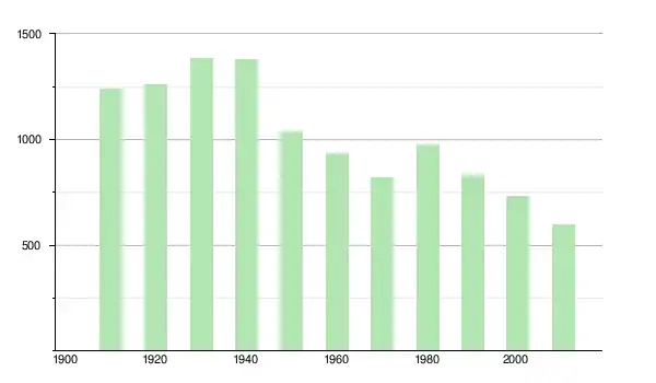 | 1950 | 1 038 | ▼ −24,73 % | |