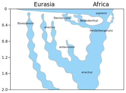 Les preuves génétiques montrent que l'évolution humaine ne peut pas être considérée comme une évolution cloisonnée consécutive à la divergence de différentes lignées. Les formes modernes et archaïques se sont en effet croisées de nombreuses fois en Afrique, au Moyen-Orient et en Asie, et le flux génétique allait dans les deux sens[2],[3]. Certains gènes acquis par hybridation ont notamment pu être sélectionnés chez Homo sapiens en raison de leur caractère adaptatif[2]. Toutefois, l'hybridation n'a pas été jusqu'au brassage complet des différents groupes humains, puisque chacun d'eux semble avoir finalement conservé son identité propre. De ce fait, l'évolution humaine récente se présente plutôt a posteriori comme une évolution de groupes distincts avec des épisodes ponctuels d'hybridation.