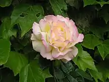 • 'Ophelia' obtenu par W. Paul en 1912, buisson aux fleurs rose pâle de forme parfaite. Son sport grimpant est plus cultivé.