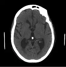 - Le scanner cérébral peut montrer une dilatation ventriculaire disproportionnée par rapport à l’atrophie corticale avec élargissement des cornes frontales et arrondissement des cornes temporales sans atrophie de l'hippocampe.