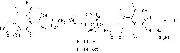 Il est parfois utilisé dans la synthèse d’amines aryle. Par exemple l'hydroxyde de cuivre(II) catalyse la réaction de l'éthylènediamine avec l'1-bromoanthraquinone ou l'1-amino-4-bromoanthraquinone pour former respectivement du 1-((2-aminoéthyl)amino)anthraquinone ou du 1-amino-4-((2-aminoéthyl)amino)anthraquinone :