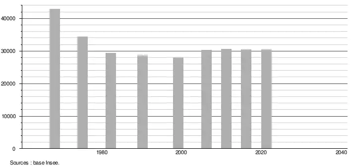 (Sources : Base Insee, population sans doubles comptes à partir de 1962[2] puis population municipale à partir de 2006[3].)