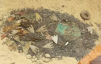 Pointes de flèche trouvées dans le tumulus de Kernonen en Plouvorn (Musée de la Préhistoire finistérienne, Penmarc'h.)
