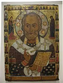 Parmi les icônes encore attachées à l'archaïsme antique il faut citer l'icône de « Vie de Saint Nicolas avec Cosme et Damien » de la paroisse d'Ozioreva (Musée russe)[9].