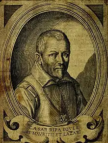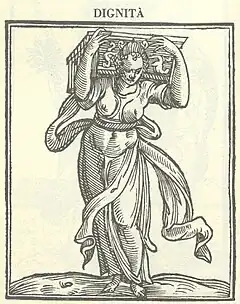 Le mot « iconologie » apparaît alors avec l'ouvrage de Cesare Ripa, Iconologia, paru en 1593. La préface de l'édition anglaise de 1709 explique que les Égyptiens ont été les premiers à exprimer les notions abstraites en images, et que les Grecs et les Romains leur ont emboîté le pas. L'iconologie se propose non seulement de décrire, comme l'iconographie, mais d'interpréter les images et les symboles en révélant leur dimension ésotérique pour en donner le sens moral[12]. La portée de ces textes est immense sur tous les arts visuels, peinture, sculpture, ornements, théâtre ou mises en scène de fêtes publiques à partir du XVIe siècle.