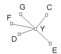 La variable Y dépend de plusieurs variables C, D, E, F et G indépendantes. Aussi la corrélation de Y avec chacune d'entre elles, prise séparément, est faible (non « significative » au sens probabiliste du terme). En réalité, il existe les liens rigoureux CY, DY, EY, FY et GY. D’où le schéma des corrélations remarquables :