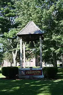 La cloche de la liberté de l’État de l’Illinois est située à Mount Morris. Elle fut réalisée en 1862 en tant que réplique de la Liberty Bell[1],[2]. La cloche fut installée dans la tour de l’église de la localité de Lake Geneva dans le Wisconsin près du rivage nord du lac Geneva[1],[2]. En 1910, l’église fut ravagée par un incendie. La cloche tomba de sa tour mais ne fut pas détruite et on l’entreposa un moment[1],[2]. Il fut décidé par les membres de l’église de reconstruire une nouvelle église sur la rive sud du lac[2]. Durant l’hiver, on essaya donc de déplacer la cloche de l’autre côté du lac en profitant du lac gelé. Sous le poids important de la cloche, la glace se cassa et la cloche coula au fond du lac[1].