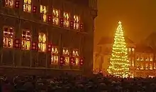 A 19h30, le maire illumine l'arbre de Noël lors d'une cérémonie marquant le début de l'illumination du centre-ville. L'éclairage public et des magasins est éteint pour ajouter à l'effet. Des Chorales plus ou moins spontanées reprennent des chants de Noël.
