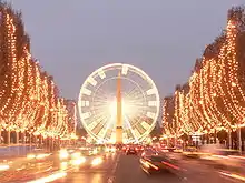 À Paris, l'allumage des guirlandes de l'avenue des Champs Elysées est chaque année l'objet d'une cérémonie officielle et solennelle, durant laquelle une personnalité est invitée par le maire à appuyer sur un bouton mettant en route l'alimentation électrique et permettant l'illumination des arbres de l'avenue. En 2008, c'est Marion Cotillard qui a été invitée[7], en 2009, Charlotte Gainsbourg[8] et en 2010, Mélanie Laurent. Pour 2011, il s'agit de l'actrice française Audrey Tautou qui donne le coup d'envoi des illuminations de la plus belle avenue du Monde.