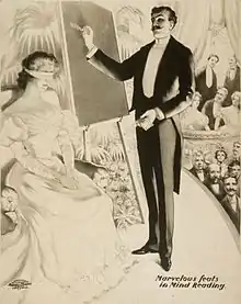 - « Il était souvent accompagné d'une belle assistante court-vêtue (pour pimenter le spectacle). De son chapeau, il pouvait faire sortir une foule de choses : foulards, ballons, colombes qui s'envolaient aussitôt et même de mignons petits lapins ». Cf Jean-François Dortier, « Dix questions (plus une) sur la magie et la sorcellerie », Les Grands Dossiers des Sciences Humaines, no 60, , p. 2.
