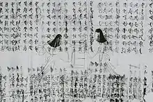 Version hakubyō : la plus ancienne version existante réalisée à l’encre de Chine sans couleur (une technique nommée hakubyō), qui date du milieu du XIIIe siècle et dont il subsiste dix-neuf fragments sur lesquels des textes de sutras ont malheureusement été surimposés ultérieurement. Il s’agit probablement d’une copie d’une œuvre plus ancienne[3],[4].