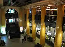 L'intérieur de la salle d'opérations est à grande échelle et très décorative. Les colonnes et les pilastres d'ordre ionique sont finis avec du marbre artificiel jaune. Un rôle actif est joué par le plafond à caissons sculptés et les lustres en bronze de la forme originale.