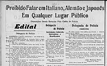 Quand le Brésil déclara la guerre au Japon, les Japonais furent persécutés par le gouvernement brésilien, et comme ce fut le cas avec la langue des communautés allemande et italienne du pays, le japonais fut interdit sur tout le territoire. Les écoles japonaises furent fermées et les manifestations culturelles interdites.