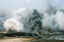 Avant la guerre en Irak de , l'Irak a également incendié divers champs pétrolifères[14],[15].