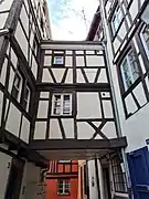 Après la démolition de plusieurs maisons, l'impasse en forme de couloir a été transformée en cours[1], entourées de maisons à colombages.