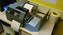 - (en) Cet article est partiellement ou en totalité issu de l’article de Wikipédia en anglais intitulé « Barcode printer » (voir la liste des auteurs).
