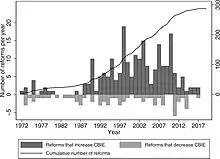 La question de l'indépendance des banques centrales reste toutefois assez marginale dans les réflexions sur la politique monétaire (avec des exceptions notables, comme par exemple la RFA de l'après-guerre[4]). Mais, entre 1988 et 1998 environ, de la réforme de la banque centrale de Nouvelle-Zélande (en 1989) à celle de la Banque d'Angleterre en passant par la création de la BCE et les travaux du comité Delors, on assiste à l'émergence très rapide d'un consensus entre économistes, banquiers centraux et responsables politiques sur la nécessité de renforcer l'indépendance des banques centrales. Plusieurs explications ont été avancées à cette conversion rapide comme les progrès de la science économique (voir paragraphe suivant), l'expérience de l'inflation des années 1970[5], la montée du pouvoir de la finance, les divisions politiques au sein de gouvernements fédéraux et/ou de coalitions de gouvernement qui laisseraient plus de pouvoir aux banquiers centraux[6] ou encore la volonté de réaffirmation de l'autorité intellectuelle des économistes autour d'une idée (pourtant pas si) consensuelle[7].