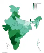 En 2017, l'économie indienne est la septième du monde en PIB nominal et la troisième en PIB à parité de pouvoir d'achat. Elle passe au cinquième rang mondial en 2023 en PIB nominal[7]. L'Inde, pays à forte croissance économique, est considérée comme un nouveau pays industrialisé. Cependant certains problèmes comme la pauvreté, l'analphabétisme ou la corruption restent très importants. Les inégalités de revenus sont en augmentation. En 2016, les 10 % les plus riches disposaient de 55 % des revenus nationaux[8]. L'Inde est passée de la 140e à la 177e place entre 2016 et 2018 sur l'Indice de performance environnementale réalisé par des chercheurs des universités de Yale et de Columbia. L'étude souligne en particulier la détérioration « alarmante » de la qualité de l'air[9]. En juin 2022, l'Inde se classe dernière de ce classement, à la 180e place[10].