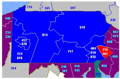 Les indicatifs régionaux 215 et 267 sont deux des multiples indicatifs téléphoniques régionaux de l'État de Pennsylvanie aux États-Unis.