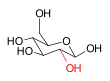 | L'indican (indoxyle β-D-glucoside) présent dans les feuilles de l'indigotier, est le précurseur du pigment d'indigotine. L'extraction du pigment coloré se faisait aux Antilles, par le traitement de la matière végétale dans une série de trois bassins (la trempoire, la batterie et le reposoir, voir section suivante). | ![]() Indican |