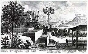 Les premiers colons français qui s'établissent en Guadeloupe en 1635, se tournent eux aussi, rapidement vers la culture de l'indigotier. En 1696, on recense 125 installations de production d'indigo, nommées indigoteries. Mais le déclin est très rapide en raison de l'émergence de Saint-Domingue (Haïti) qui va s'imposer comme le principal fournisseur d'indigo du Nouveau Monde et le restera d'ailleurs jusqu'à la fin du XVIIIe siècle[18]. En 1780, pas moins de 3 150 plantations d'indigo y produisaient annuellement des centaines de tonnes de teinture, envoyées sur les ports de Bordeaux et Marseille, pour alimenter l'industrie textile française en pleine expansion.